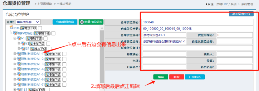 若要修改仓位信息,点中仓位名后进行修改,删除操作同下。 如下图: ![]() 点晴模切ERP更多信息:http://moqie.clicksun.cn,联系电话:4001861886 该文章在 2023/11/23 16:34:18 编辑过 |