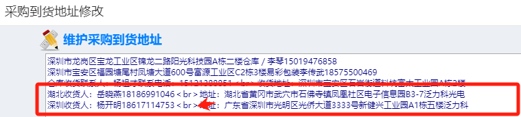![]() 点击此处,进行维护地址 如下图: 添加址址一行到底,在要换行的位置加<br>即可 如下图: 在模板设置中加上以下代码在对应要显示的位置 //用于保存地址但不显示 <span style="display:none;" id="save_consignment_address">$consignment_address$</span> //用于显示替换后的显示 <span style=";" id="show_consignment_address"></span> 如下图: