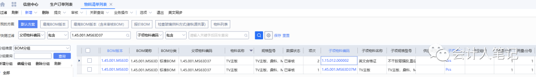 (1) BOM是静态的,它是在生产工艺确定后编制的,一般不会频繁变动。而工单需领用量是根据实际生产计划和BOM计算得出的,它会随着生产计划的调整而调整。(2) BOM是指导生产的依据,它列出了成品所需的原材料和零部件。而工单需领用量是根据实际生产计划和BOM计算得出的具体需求数量,它为实际的生产操作提供了具体的指导。