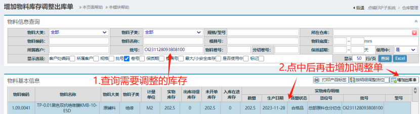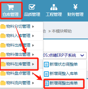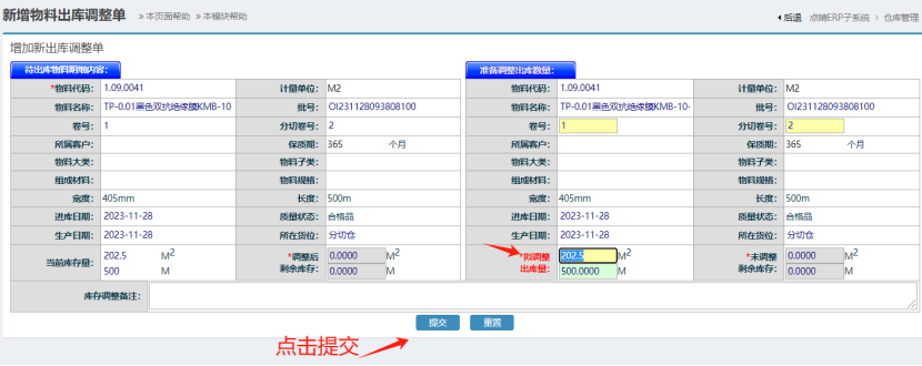 点晴模切ERP-库存调整-调整出库操作