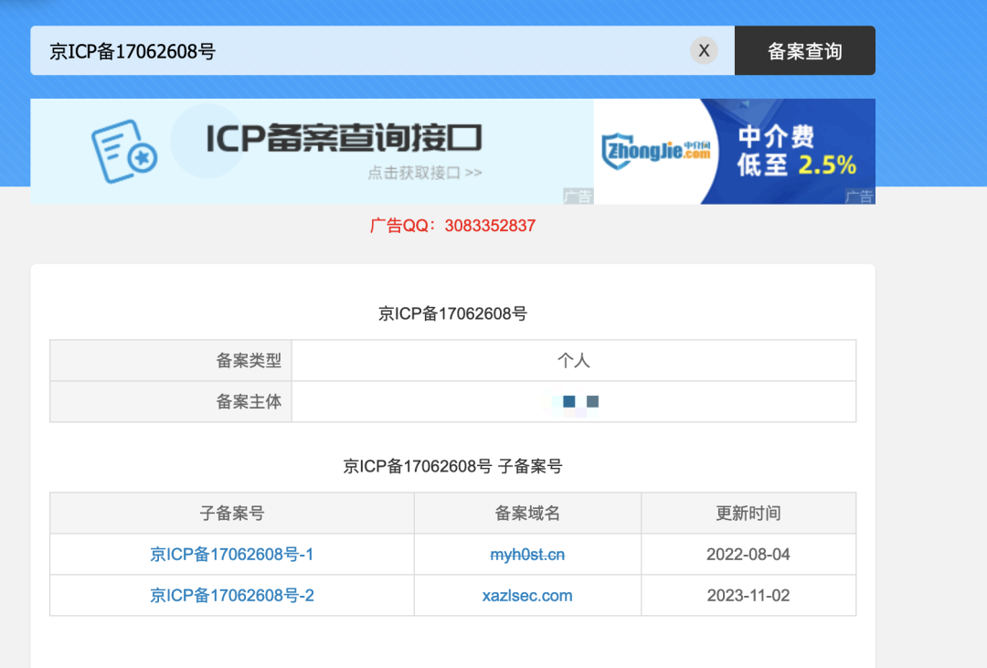 有了备案号之后,还要进一步确认,可以通过备案号进行反查注册的域名,这里可以使用多个平台,比如: