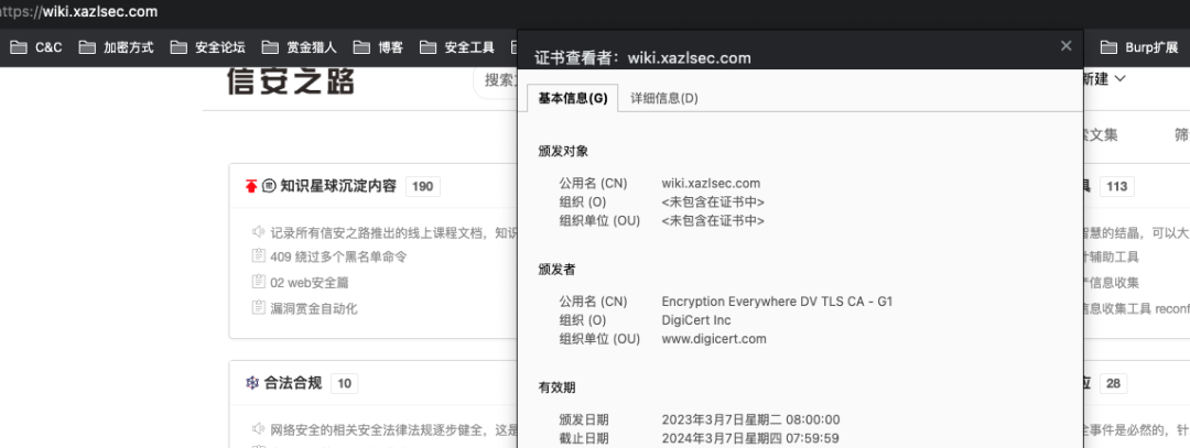 有了主域名,我们可以组合一些常见字典,进行 dns 枚举,尝试发现目标 IP 所对应的域名是什么。 0x03 证书信息你所发现的 IP 站不一定是 443 端口,可能并没有绑定证书,但是该 IP 可能不仅仅只开放一个 80 端口,所以我们可以通过端口扫描的方式,探测常见的证书端口,如果存在,则获取该证书信息,从而提取证书中绑定的域名,也是一种证明归属的方式。比如: