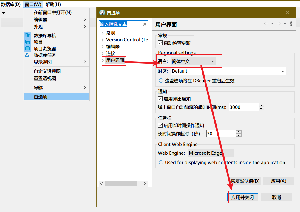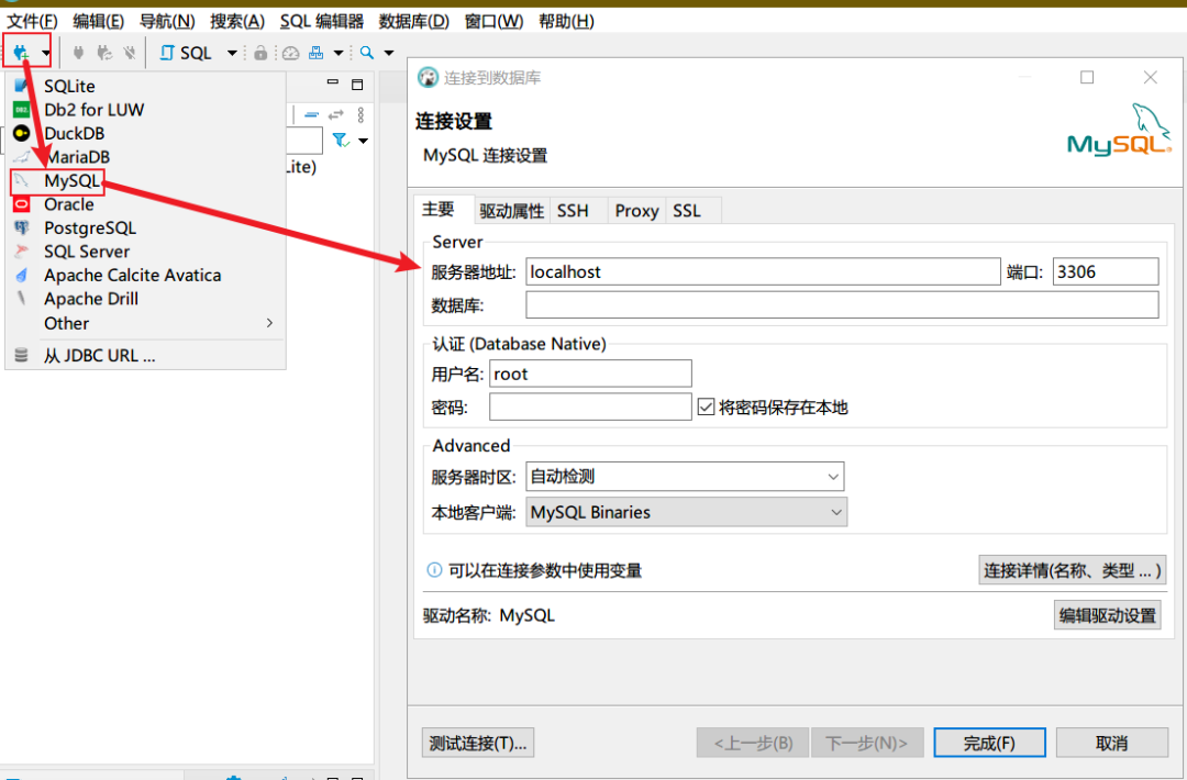 它的安装,也超级简单。访问官网 https://dbeaver.io/download/,左侧是社区版本,右侧是企业专业版,一般个人使用左侧的即可,找到匹配你电脑的版本,然后,下一步安装就好了。如果你遇到了英文,可以在安装之后,修改语言为简体中文。上手也是非常简单,选择你要连接到数据库类型,然后,就会弹出连接配置,第1次使用某个数据库,会需要下载对应的驱动,下载后,就能正常使用了。