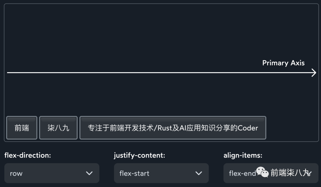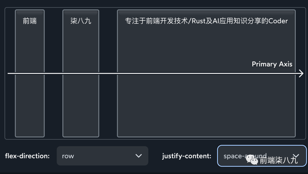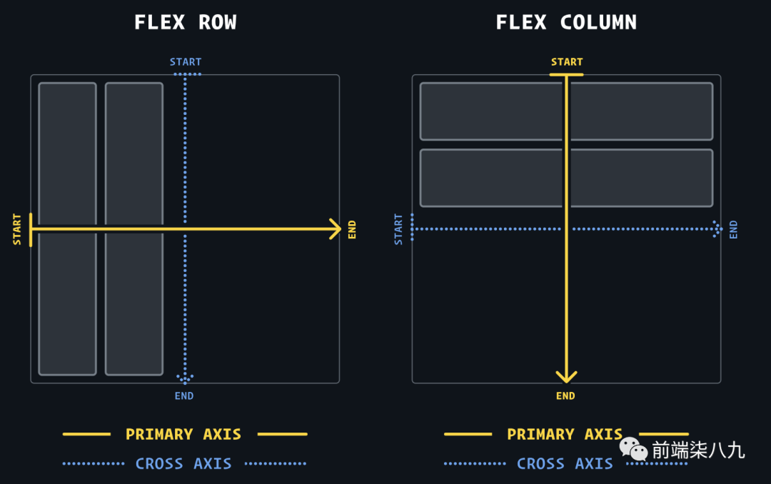 ?在Flexbox中,一切都「基于主轴」。算法不关心垂直/水平,甚至不关心行/列。所有规则都围绕这个主轴以及垂直运行的交叉轴结构。