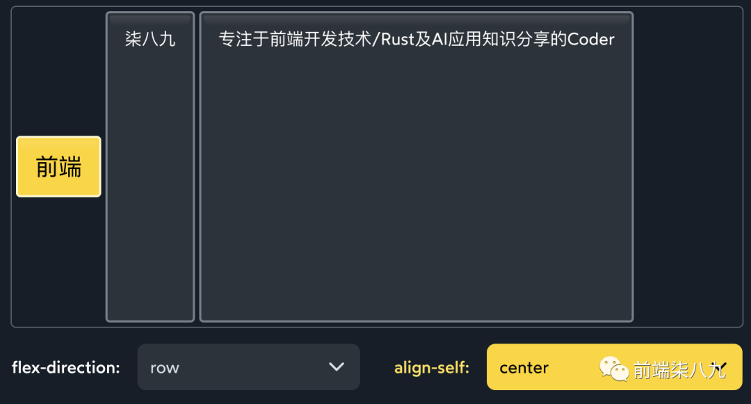 与justify-content和align-items不同,align-self应用于子元素,而不是容器。它允许我们沿着交叉轴改变特定子元素的对齐方式: