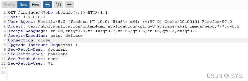 各字段分别为:客户端地址、访问者标识、访问者的验证名字、请求时间、请求类型、状态码、发送给客户端的字节数 当发现网站存在包含漏洞,但无webshell文件包含,也无上传点时 当访问不存在的资源时,apache日志同样会记录。 访问127.0.0.1/include/<?php phpinfo();?>,再包含日志文件