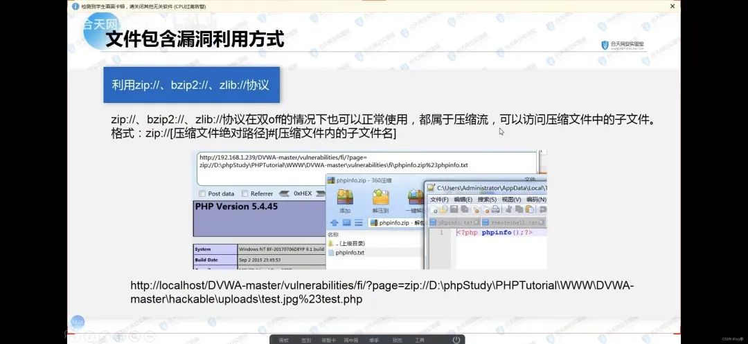 通过zip://协议执行zip压缩包中的phpinfo.php文件: