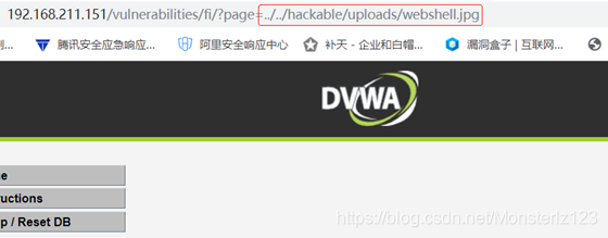 文件保存的完整路径为: C:\phpStudy\WWW\hackable\uploads\webshell.jpg DVWA平台low等级文件包含漏洞页面如下: