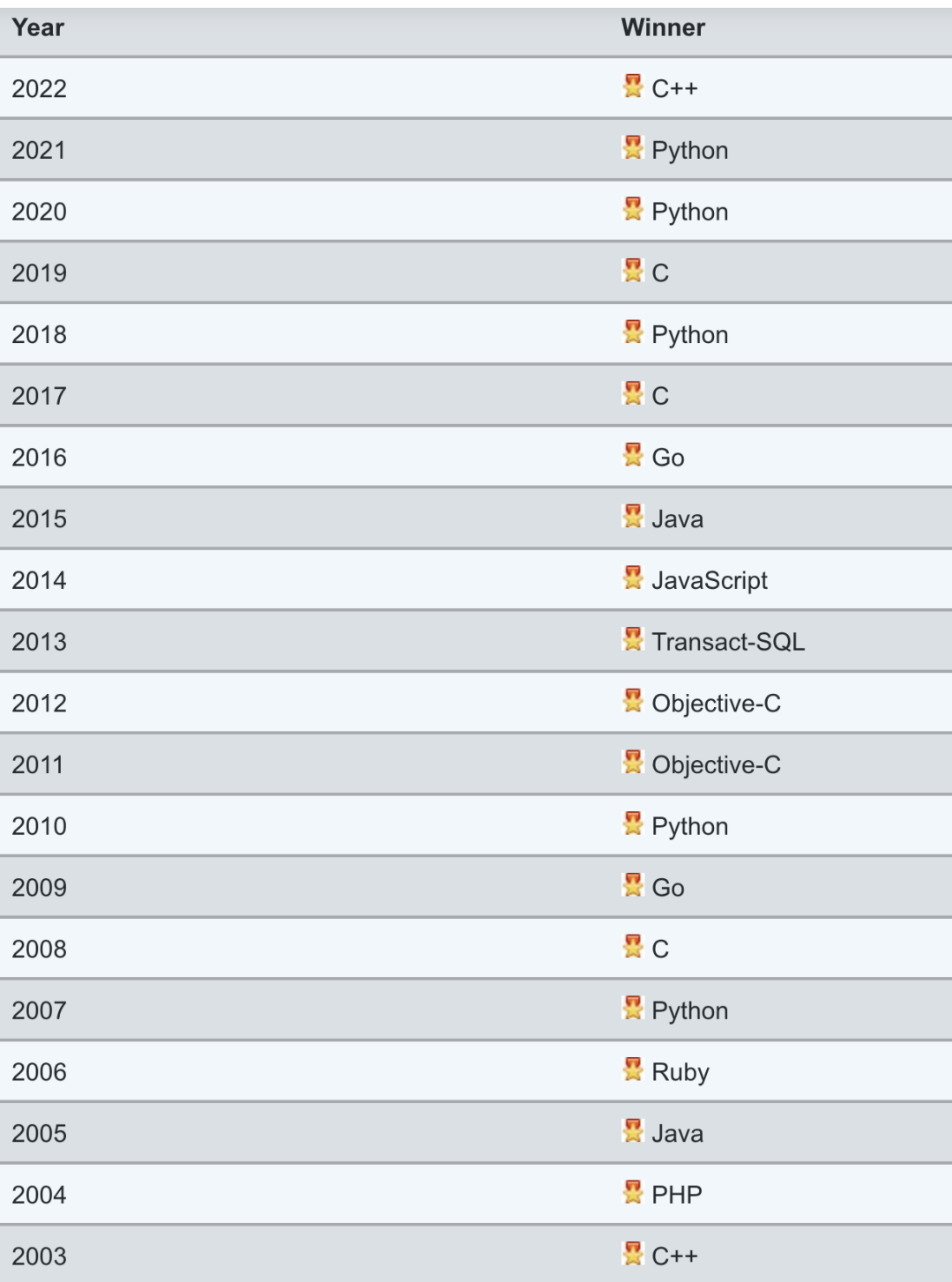 编程语言“名人榜”(2003-2022)