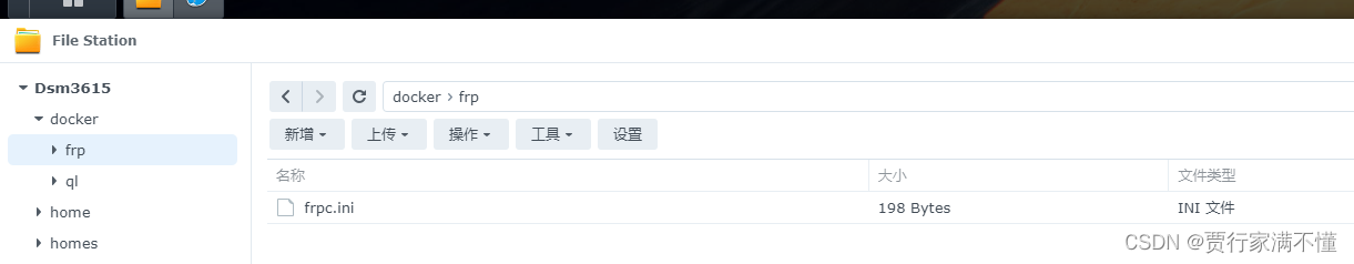 群晖docker目录下创建frp目录,并将配置文件上传。