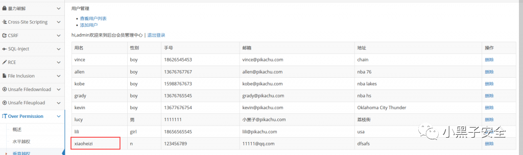 刷新普通用户界面,发现我们使用普通用户添加了一个xiaoheizi用户