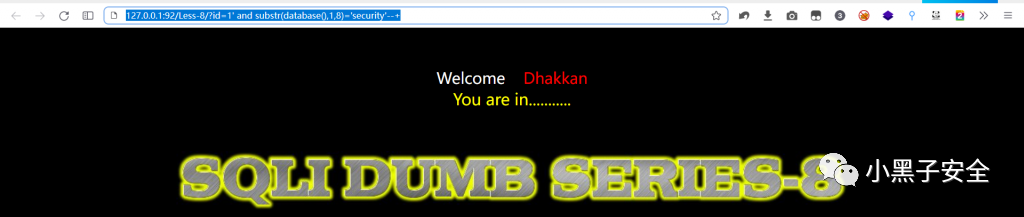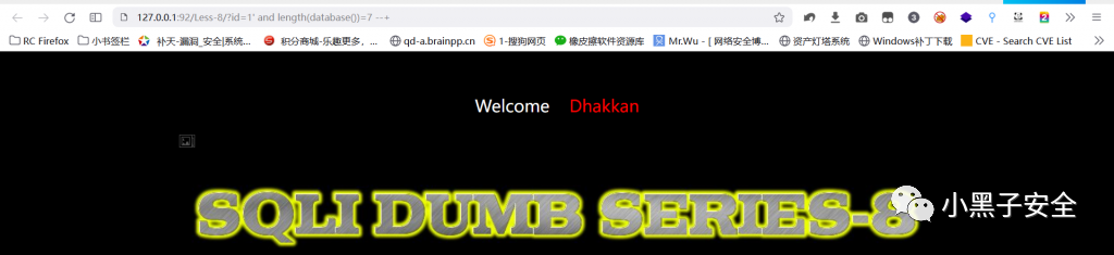 数据库名称长度等于7的时候页面错误,等于8的时候页面正常,说明数据库名称长度为8
