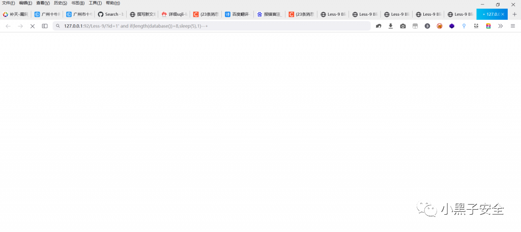 不管你输入什么,页面都还是那个页面,不会发生变化。这个时候就要用到延时注入的语句,通过页面的响应时间判断条件是否成立,如:如果条件成立则页面10秒后在响应,条件不成立则正常响应。