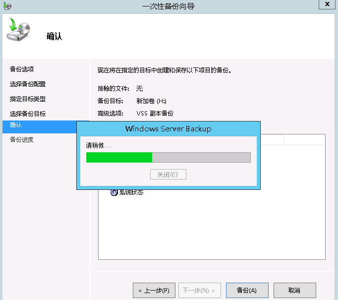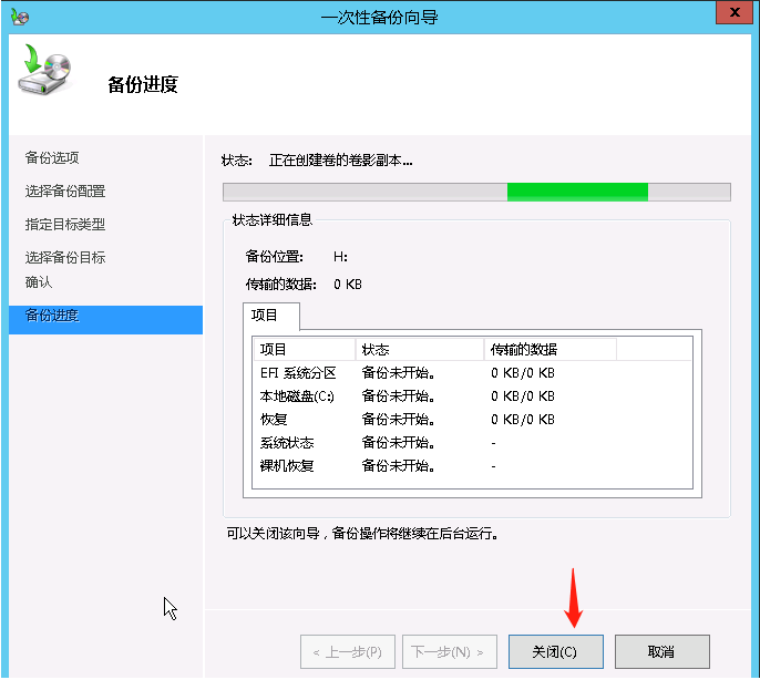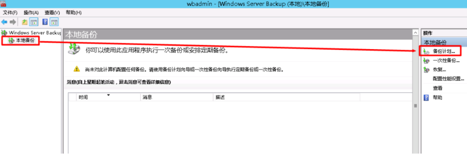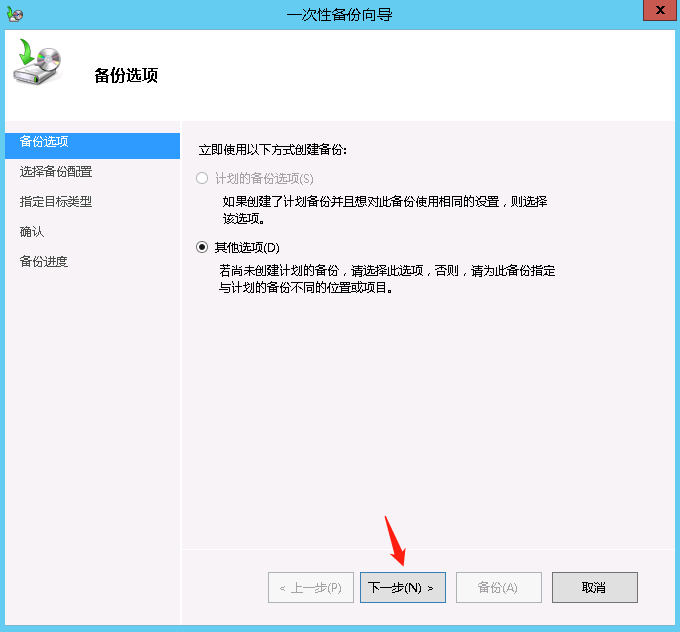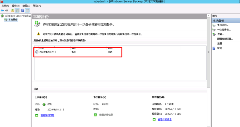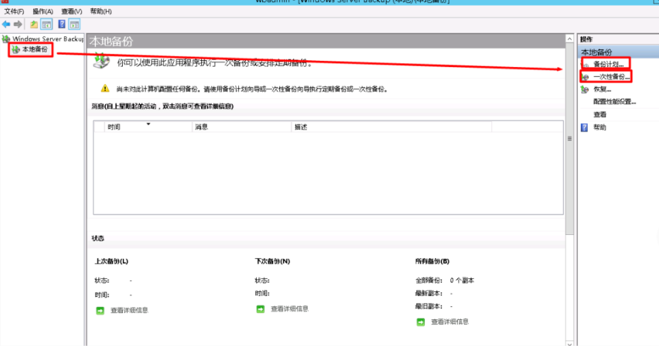 步骤二:利用Windows server backup创建一次性备份