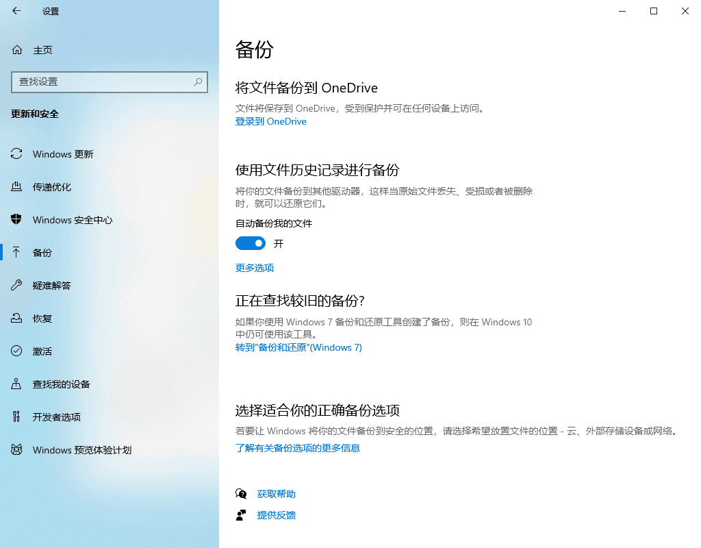 使用文件历史记录备份重要文件