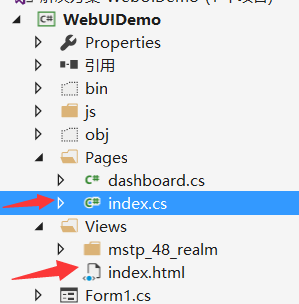 Html页面和C#类绑定,页面和类的名称要一样,Html在哪个文件夹无所谓,区分大小写, 支持主页面和框架页面的绑定