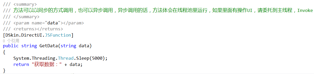JS同步调用C#方法:参数对应,直接调用就是同步调用