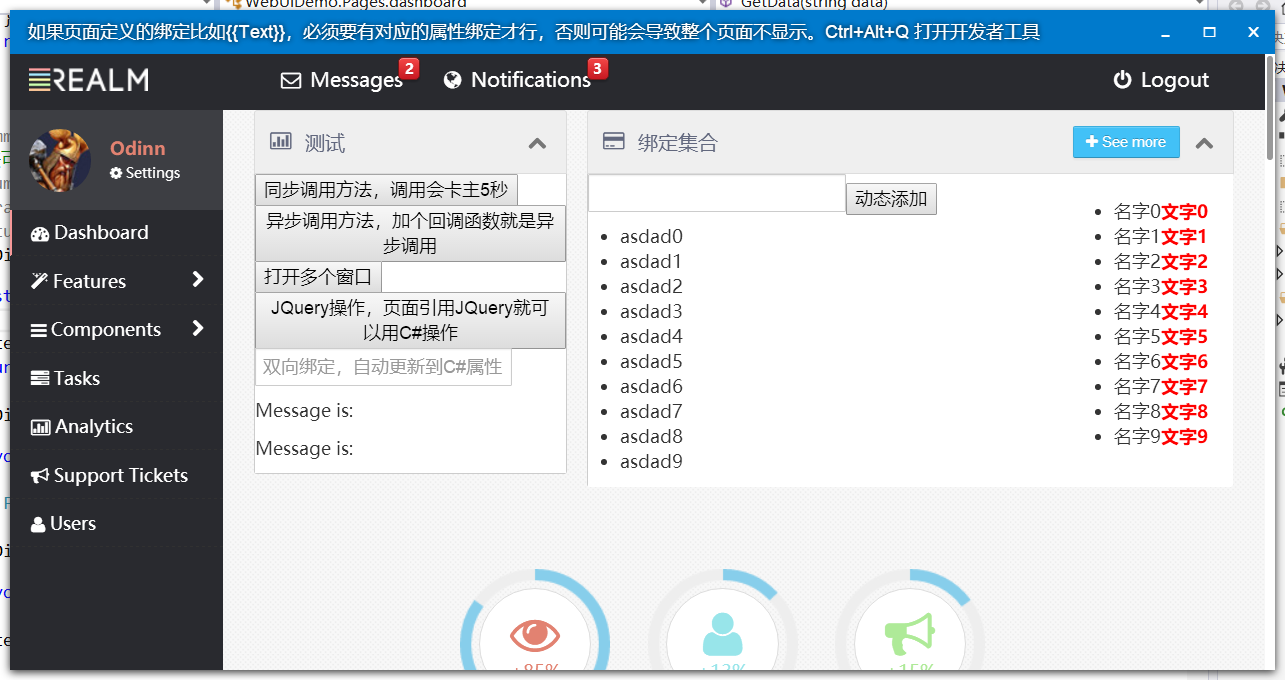 C#属性和页面双向绑定,依赖Vue,支持简单属性的双向绑定,和集合的单向绑定,复杂属性请用Json字符串