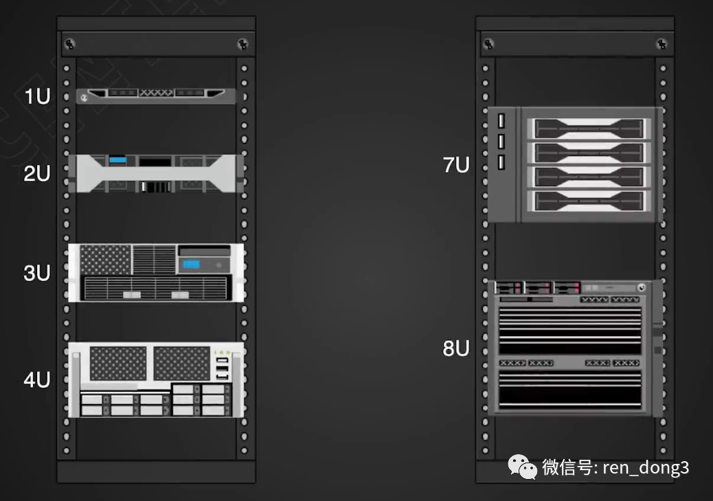 机架式服务器则以U高度来划分,有1U、2U、3U、4U、7U、8U等高度,1U一般为4.445CM