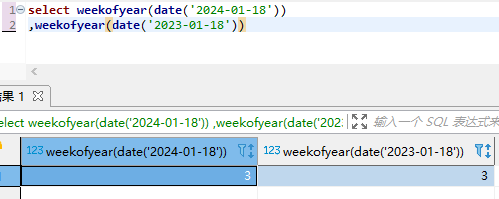 比如现在是2024-01-18,获取本周的函数用WEEKOFYEAR,得到的结果是3,2023-01-18得到的结果也是3,那么在一个时间范围比较大或者含历史全量数据的表中取本周的数据,可能将之前年份的周数据也都取了,导致数据不准确。