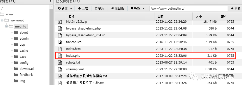 好的,让我们来探讨一下用户权限的问题。目前我的用户权限是www,但是我想要获得root权限。这时候我们可以考虑一下suid提权的相关内容。SUID(Set User ID)是一种Linux/Unix权限设置,允许用户在执行特定程序时以该程序所有者的权限来运行。然而,SUID提权也是一种安全漏洞,黑客可能会利用它来获取未授权的权限。为了给大家演示一下,我特意将我的服务器上的find命令设置了suid提权。我们执行一下find index.php -exec whoami \;命令,如果find没有设置suid提权的话,它仍然会以www用户身份输出结果。所以,通过-exec ***这个参数,我省略了需要执行的命令,我们可以来查看一下index.php的权限所有者信息。