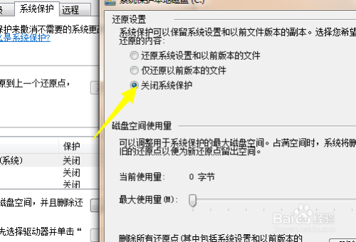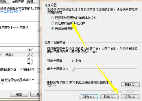 我们点击关闭上面两个任一一个选项,点击下面的应用,这个时候我们的还原点就建立好了。