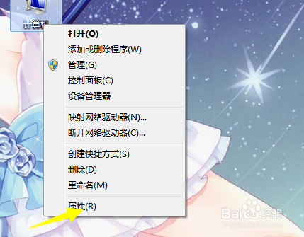 我们首先鼠标鼠标右击计算机,弹出计算机属性点击属性。