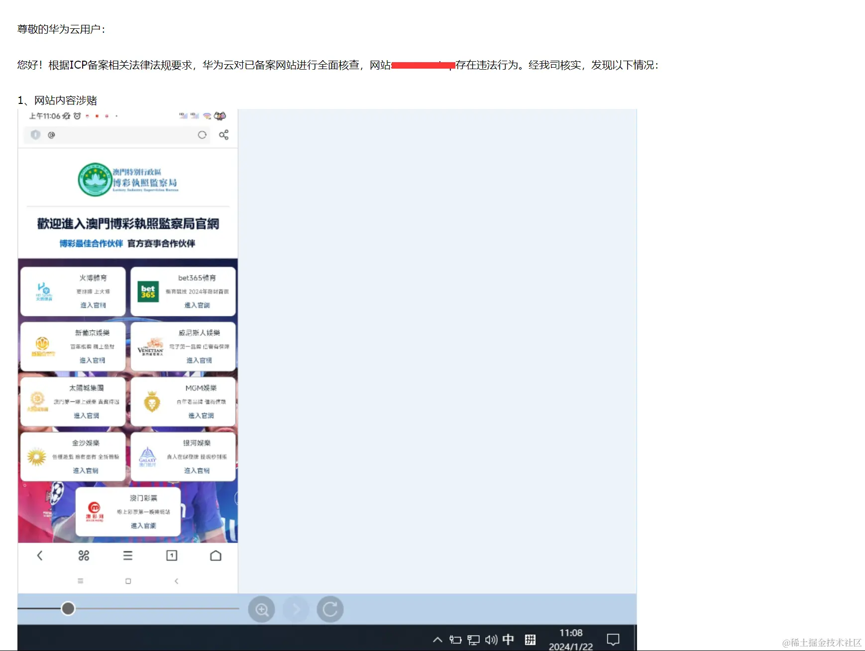 前几天,到期后一直提醒我,但是我工作繁忙,也忘了去处理。直到前两天,突然一个云厂商电话打过来,居然说我的网站涉嫌赌博,存在违法行为,要取消备案???
