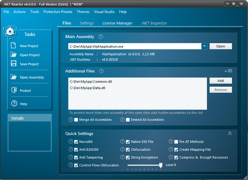 .NET Reactor可以将多个.NET文件合并或嵌入到一个可执行文件 (.exe) 或库 (.dll) 中。