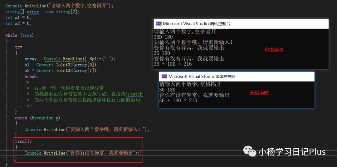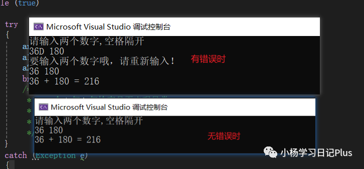下面我们就利用异常处理来完成对加法运算异常的检测,让程序在遇到异常时不是直接结束程序,而是解决异常,继续执行程序。