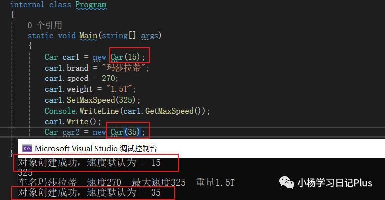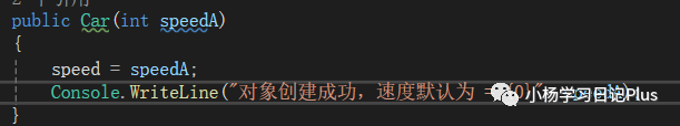 Console.WriteLine("对象创建成功,速度默认为 = {0}", speedA);