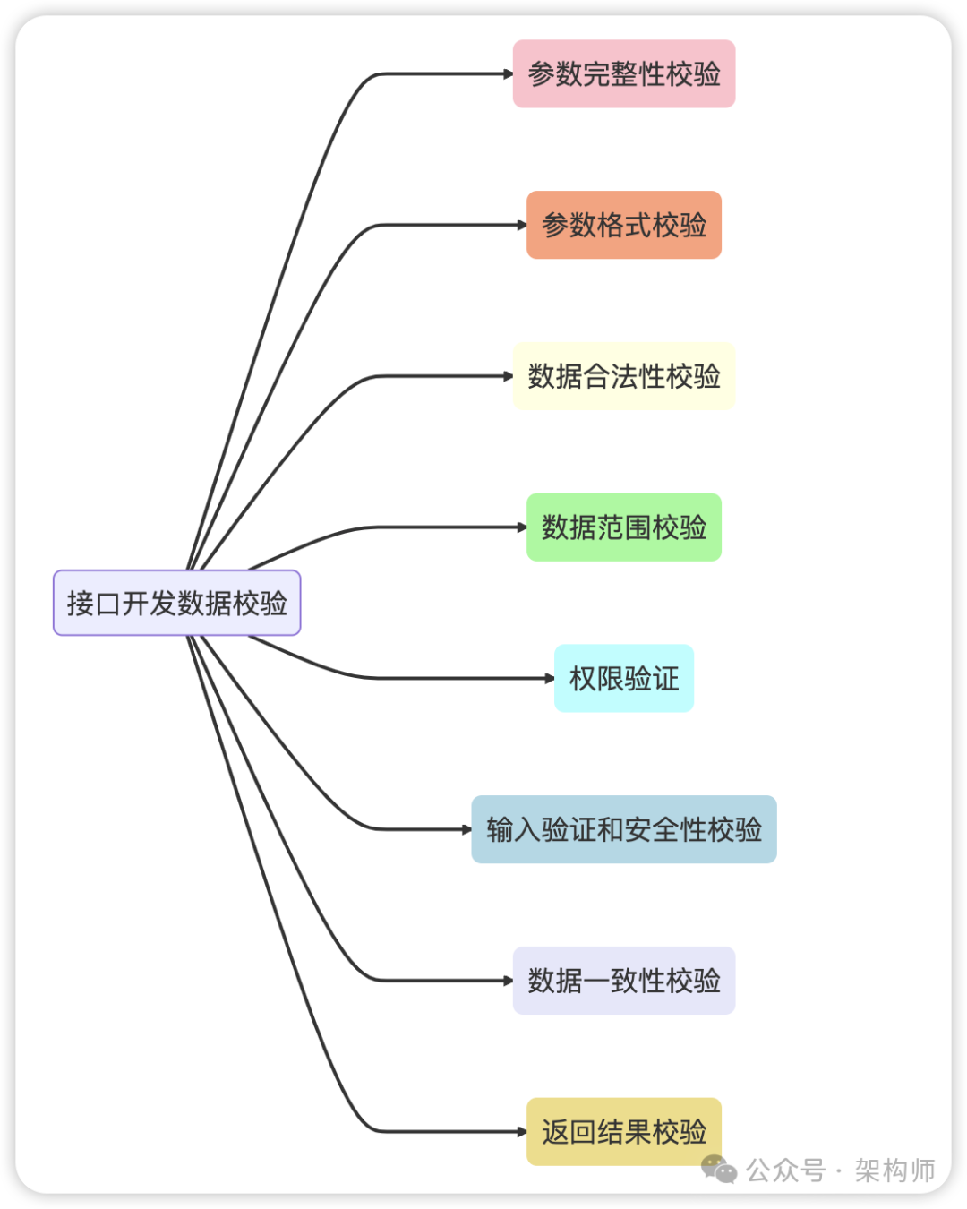 7、数据一致性校验: 在接口涉及多个数据对象之间存在关联关系时,进行数据一致性校验是必要的。确保相关数据之间的关联关系和依赖关系得到维护和满足。