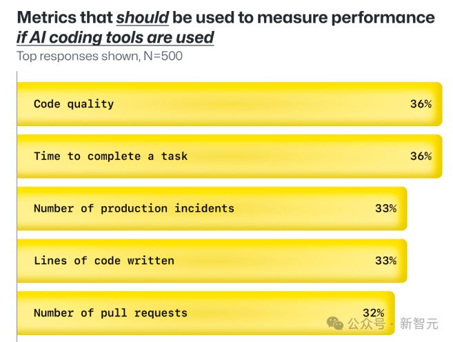 而当问题变为「在使用 AI 辅助时,你认为应该评估哪些指标?」他们的答案发生了变化,其中「代码质量」跃升为最受关注的问题,「生产环境中的问题事件」也上升至第三位: