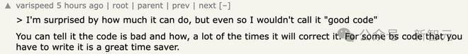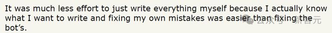 大佬型:「写下所有东西其实要花的功夫少得多,因为我知道自己想写什么,而且修正自己的错误比修正机器人的错误更容易」。