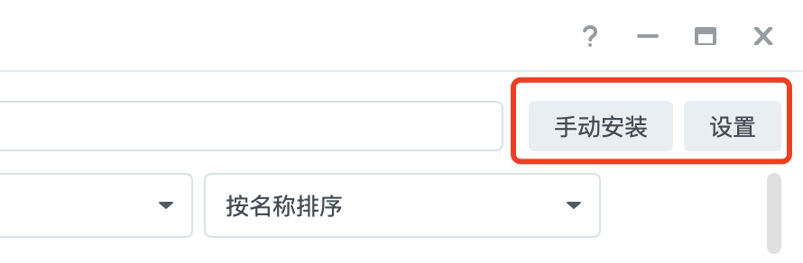 当我们打开套件中心,往往会忽略右上角的两个按钮:手动安装设置。下面分别来看看它们可以干什么: