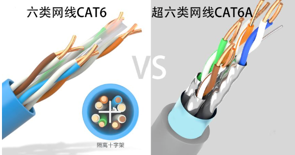 可能很多弱电朋友对6类网线与超6类网线的区别有些疑问,可以通过下面这个图来对比,就可以看得区别。