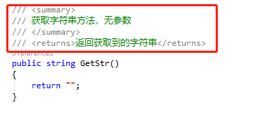 大家对注释应该都不陌生,在方法或者类前面三个斜杠就自动添加了常用的注释标记,如下图: