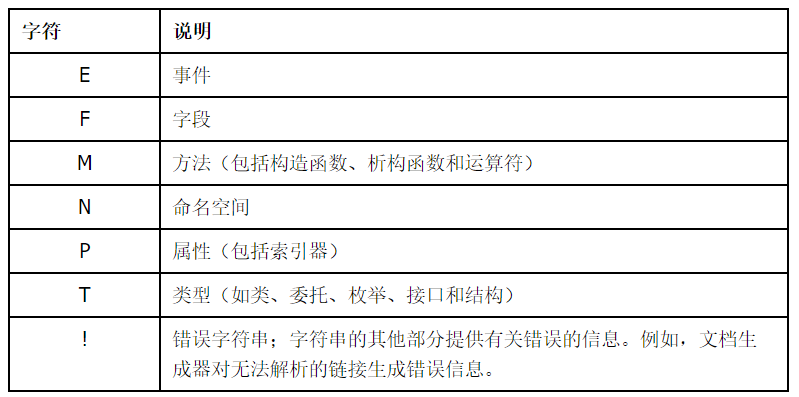 字符串的第一部分通过单个字符后跟一个冒号来标识被标识成员的种类。定义以下几种成员: