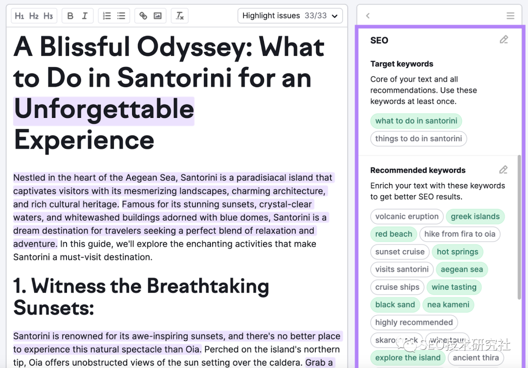 确保您的内容满足这两个标准的一个好方法是使用 Semrush 的 SEO 写作助手