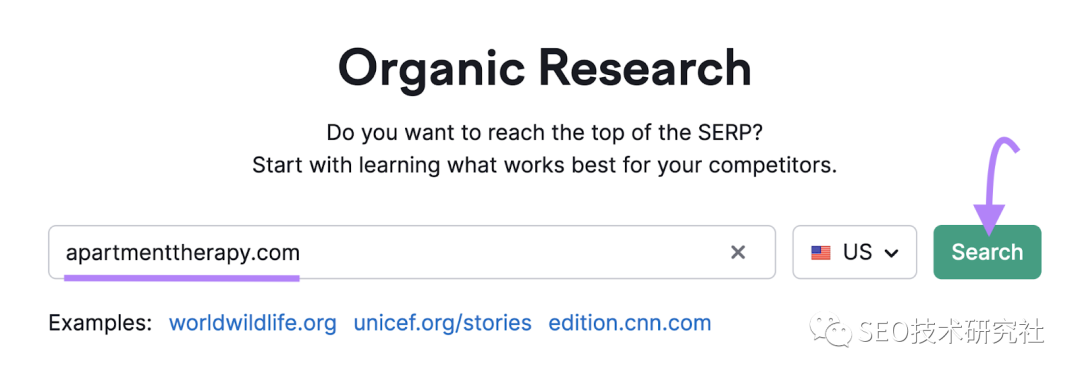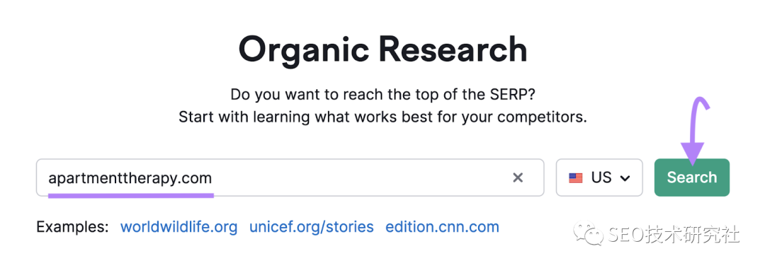 打开有机研究工具,输入您的域名,然后单击“搜索”。