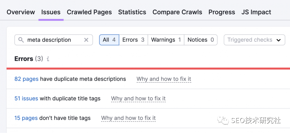 • 未针对搜索引擎进行优化的页面(例如,缺少标题、元描述、标题等)