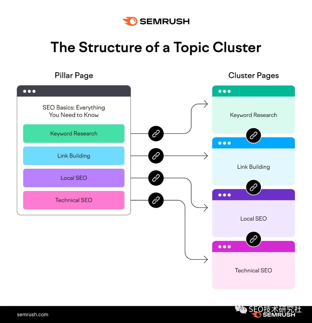 主题集群是涵盖广泛主题和相关子主题的网页组。它们有助于深入涵盖广泛的主题,并建立您对搜索引擎和用户的权威。