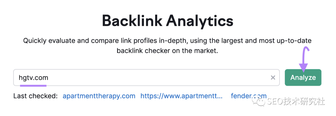 打开反向链接分析,输入竞争对手的域,然后单击“分析”。