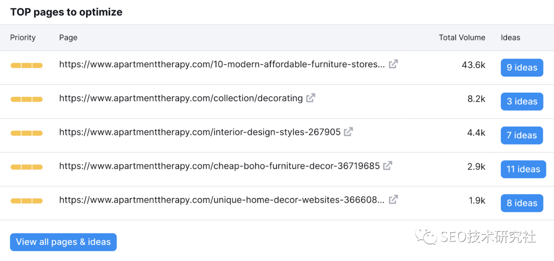 您还将获得一个表格,其中包含您应该首先优化的页面。优先考虑这些,因为它们将最具影响力。