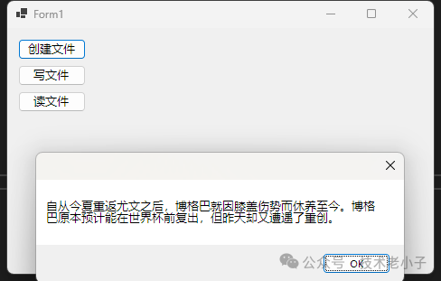 string f1 = Path.Combine(Path.GetFullPath("./"), "a.txt");File.WriteAllText(f1, "自从今夏重返尤文之后," + "博格巴就因膝盖伤势而休养至今。博格巴原本预计能在世界杯前复出,但昨天却又遭遇了重创。");