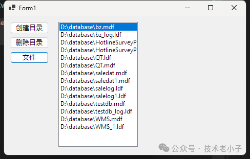 DirectoryInfo dir = new DirectoryInfo("D:\\database1");dir.Delete();//删除目录,传入true,将会删除其下的所有目录,文件