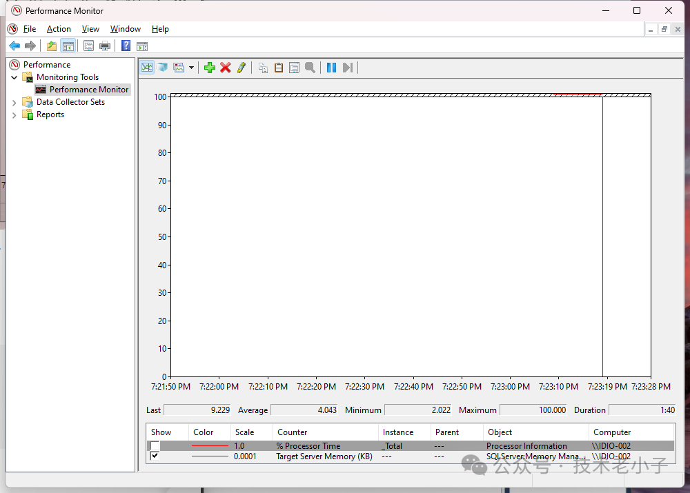 假设你想监控SQL Server实例的CPU和内存使用情况。以下是使用Performance Monitor的步骤: