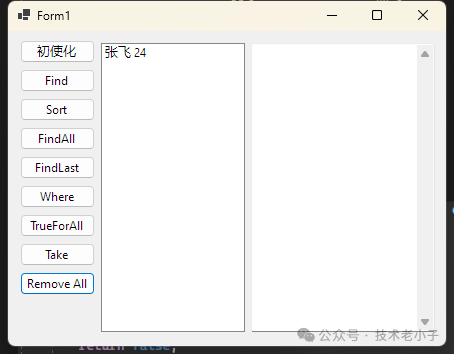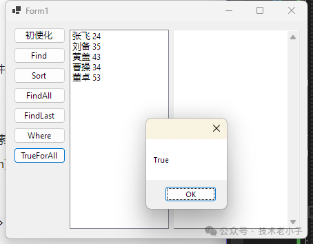 //这个写法是一样的    var lst1 = users.Find(x =>    {        if (x.Name == "张飞")        {            return true;        }        return false;    });        Json.Text=System.Text.Json.JsonSerializer.Serialize(lst,option);}