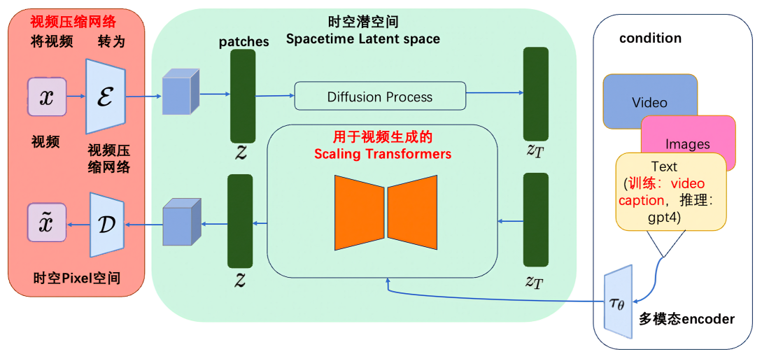 网上也有不少人画出了sora的架构图,比如来自魔搭社区的