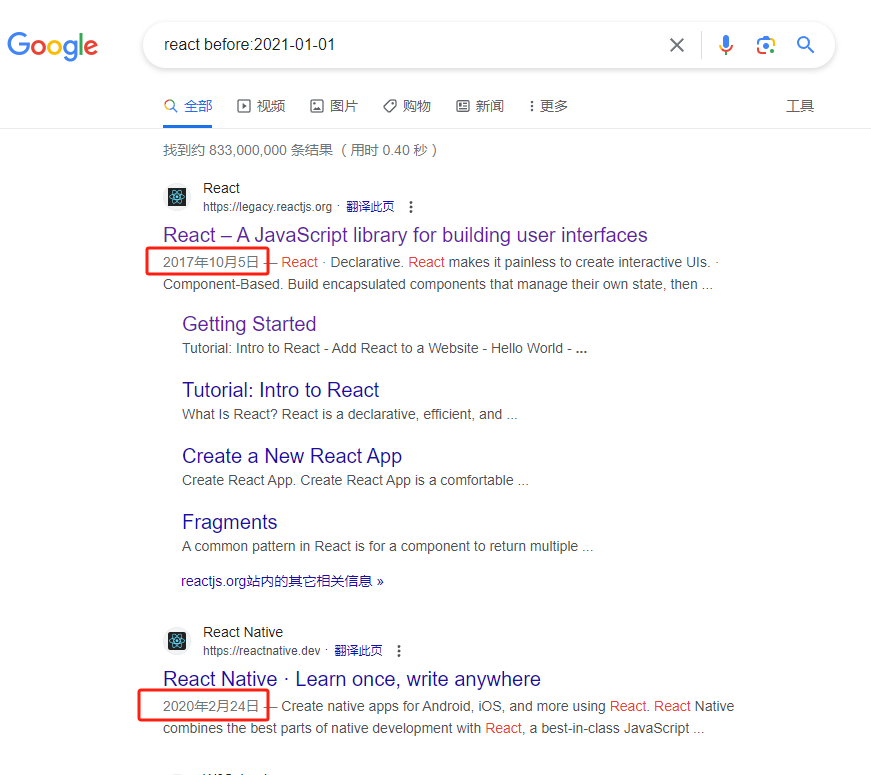 可以看到检索结果的时间,确实在 **2021年1月1日 **之前。